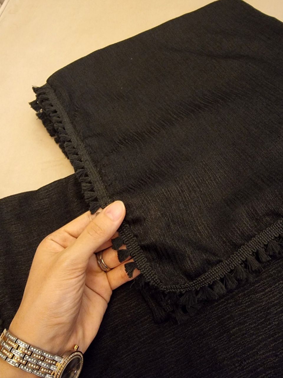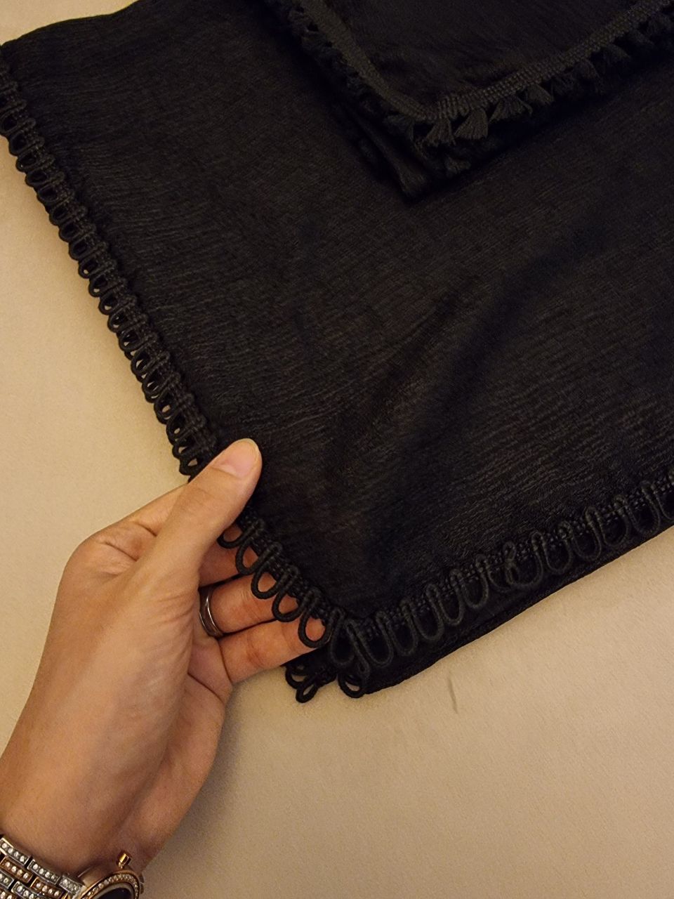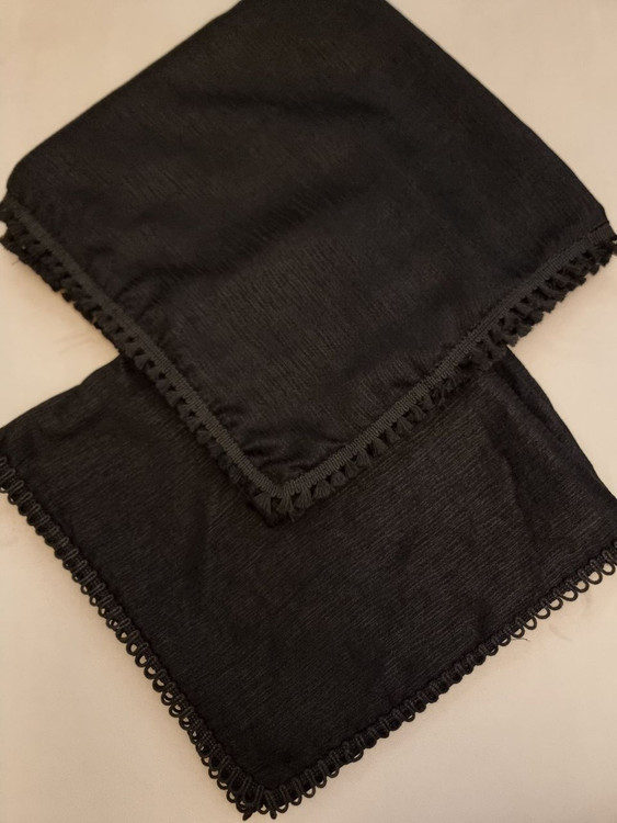 روسری مشکی نخی، روسری ساده زنانه، روسری منگولهدار، روسری شیک برای مهمانی، روسری مشکی برای استایل رسمی، روسری سبک و راحت، روسری زنانه جدید