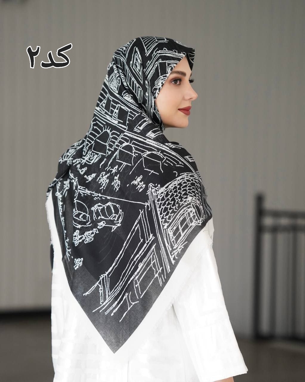 #روسری طرحدار سفید مشکی برای مانتو مشکی