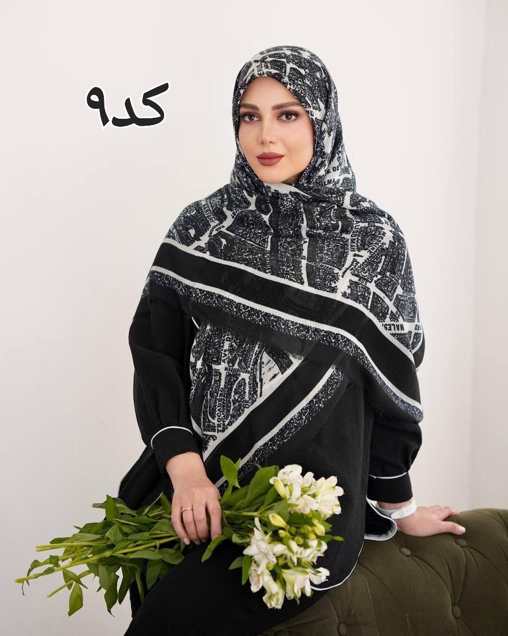 #روسری زنانه مشکی سفید