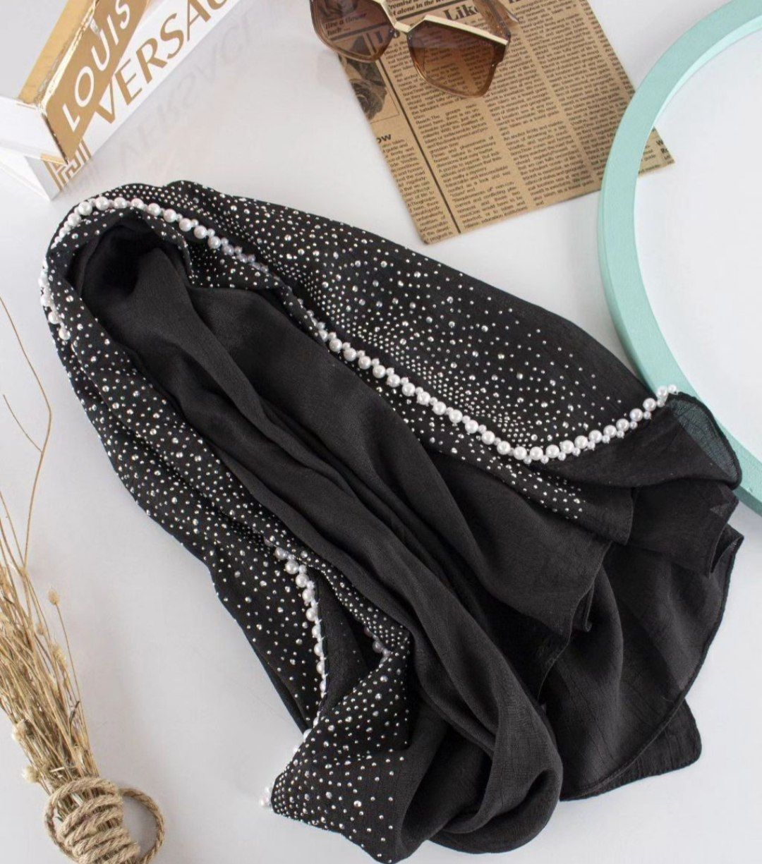 رنگ مشکی با مرواریدهای مشکی و سفید