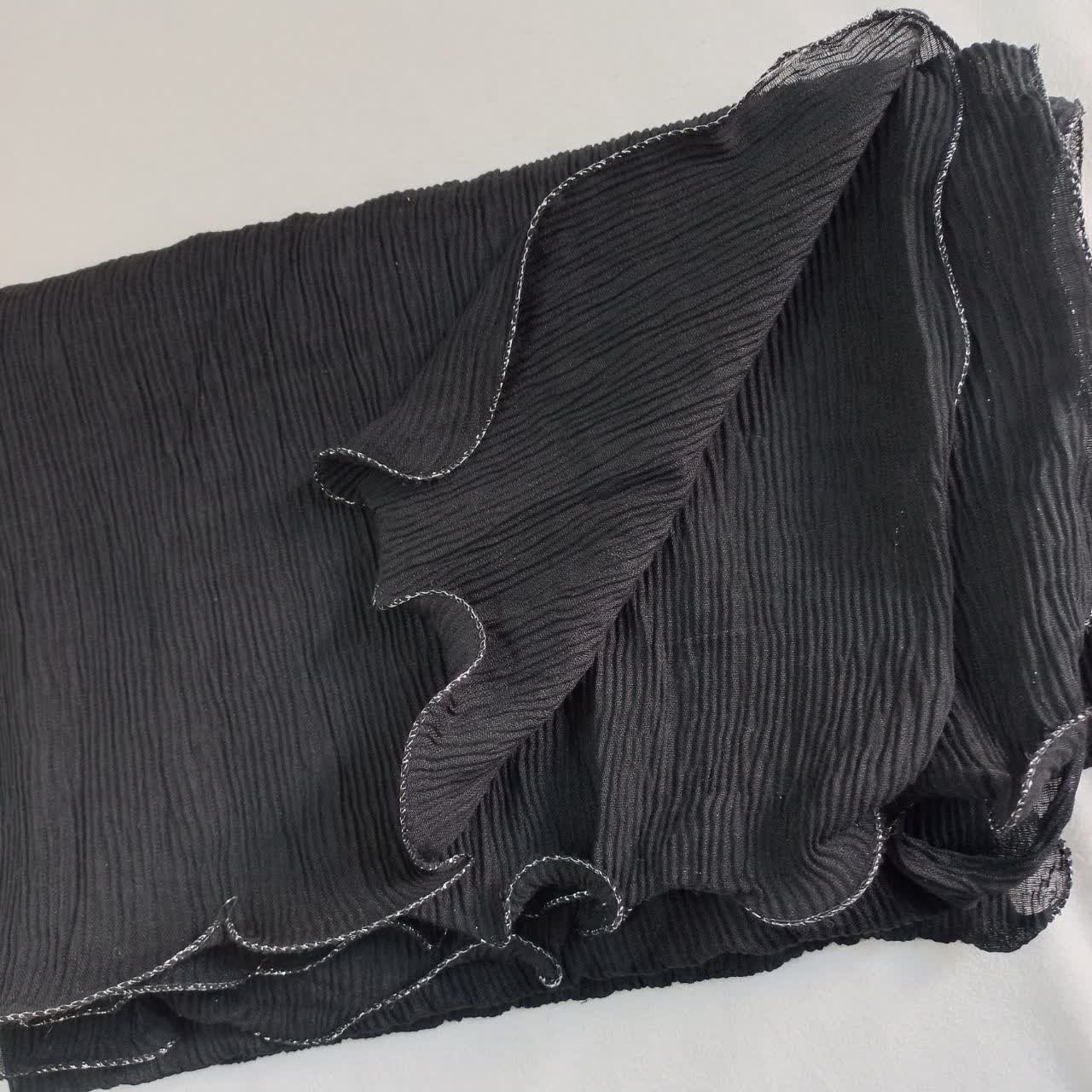 شال مشکی عروسکی موجی شال وارداتی با الیاف نخی نرم و لطیف روی سر ایستایی خوبی دارد و سر نیست بسیار مشکی و به بوری نمیزنه قواره ۲.۸۰ قیمت:۲۵۰تومان